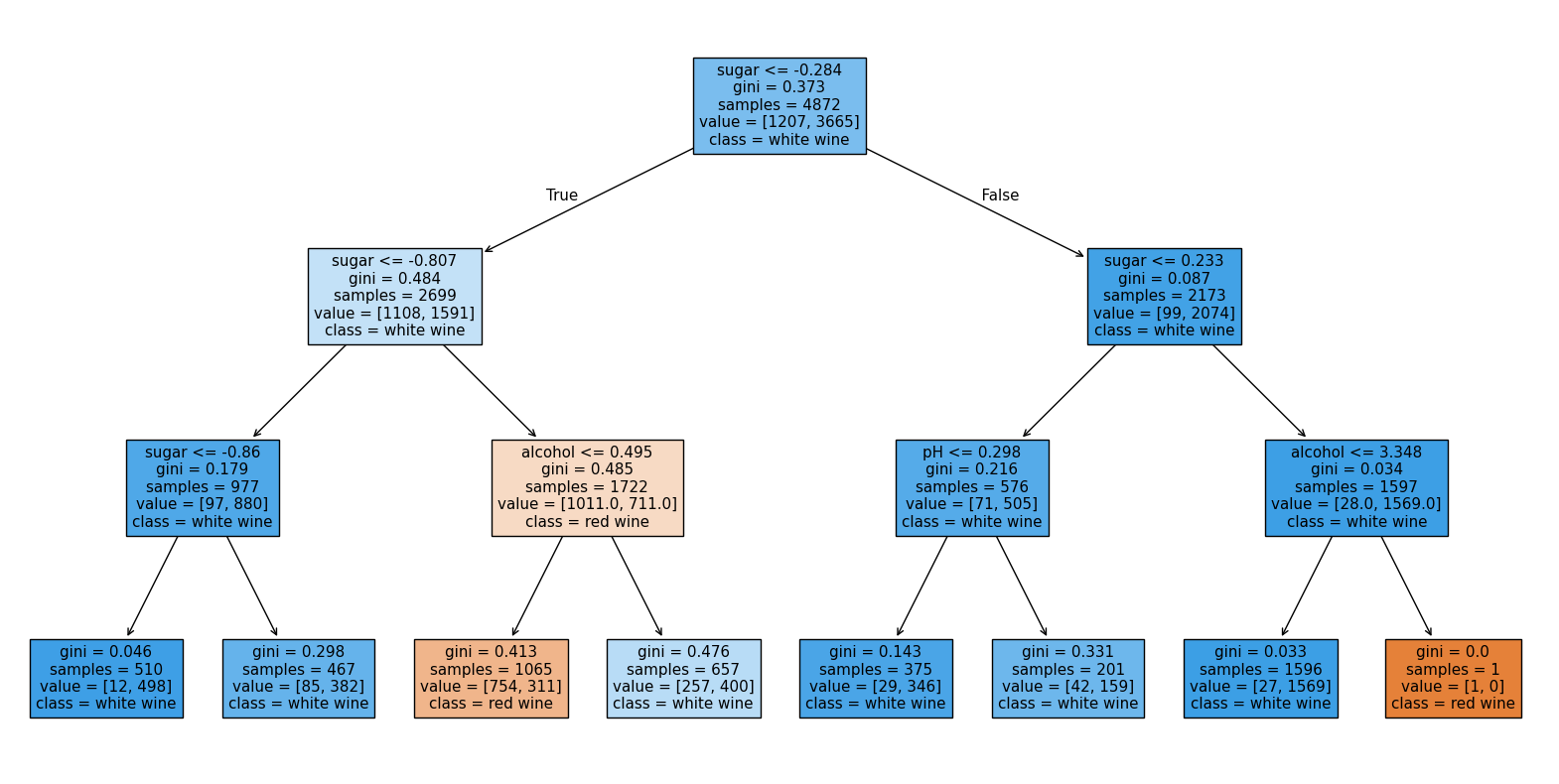 class = whilte wine : 현재 노드의 클래스(= value가 많은 클래스)