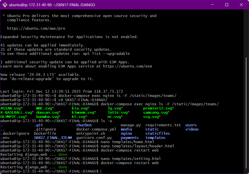 급하게 서버에서 직접 파일을 수정(nano 편집기)하고 덮어씌운 경우도 있어서, 로컬 코드와 형상 관리가 꼬이지 않았는지 걱정이 됩니다.